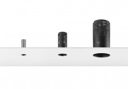 Como su nombre indica, Hole se integra en el techo de zonas donde se requiere que la luminaria pase desapercibida y se limite a su función de iluminar. Esta familia de productos comprende tres diámetros (25/50/110). La distribución de la luz en los diferentes espacios está proporcionada por ópticas de 15º, 30º y 55º y temperaturas de luz de 2700/3000/4000K. El deslumbramiento se trata con especial cuidado en la mayoría de las luminarias de alta gama en estos sectores.